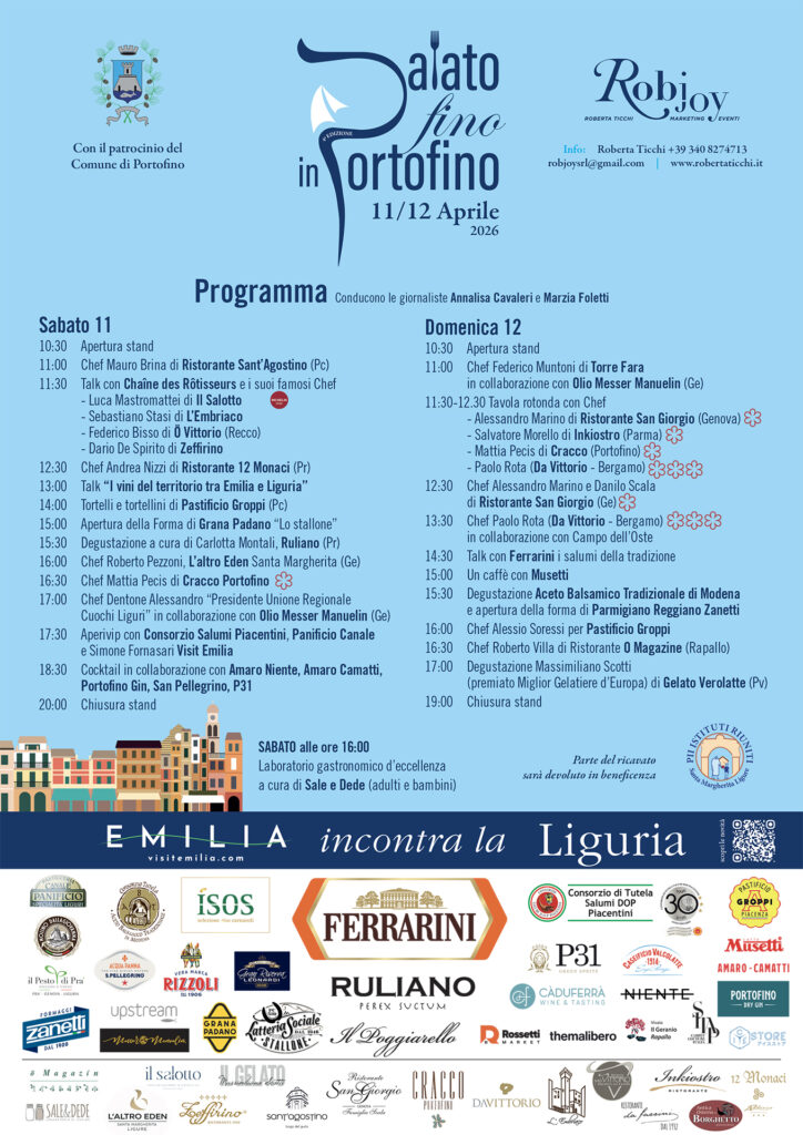 L’11 e 12 aprile 2026 torniamo in Liguria per la 4° edizione di “Palato Fino in Portofino”. Dopo la nostra prima partecipazione nel 2023, non vedevamo l’ora di riportare il sapore dei nostri prodotti nella celebre Piazzetta, in un evento che unisce magistralmente alta gastronomia e beneficenza.